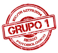 - Certificación IEC/TR 62778:2014 riesgo fotobiológico: Grupo de riesgo 1 cuando se utiliza como fuente de iluminación.