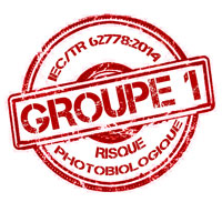 - Certification IEC/TR 62778:2014 du Risque Photobiologique : Groupe de Risque 1 lorsqu'il est utilisé comme une source d'éclairage.