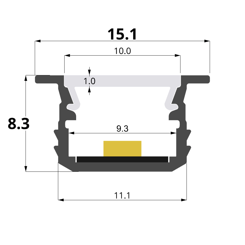 Profilo in alluminio da incasso 15x8mm. Nuovo modello compatibile con i nuovi connettori rapidi. Vedi sotto tra i prodotti correlati.