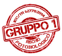 - Certificazione IEC/TR 62778:2014 rischio fotobiologico: Gruppo di rischio 1 quando utilizzate come fonte di illuminazione.